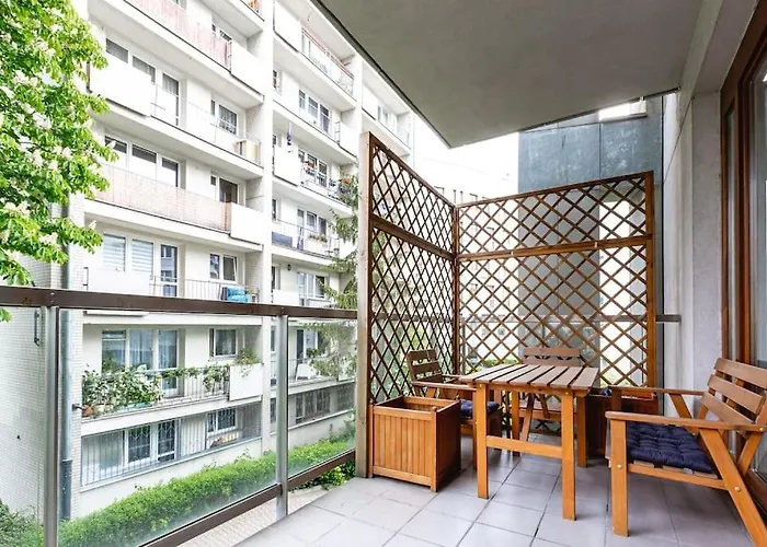 Das Bright And Cozy Apartment Near Park, With A Huge Terrace bietet eine Reihe von Annehmlichkeiten für Ihren Komfort, einschließlich von einer Kaffee-/Teemaschine, einem Kühlschrank und Küchenutensilien. Der Bahnhof Warszawa Powisle befindet sich nicht weit entfernt von diesen Unterkünften.